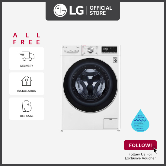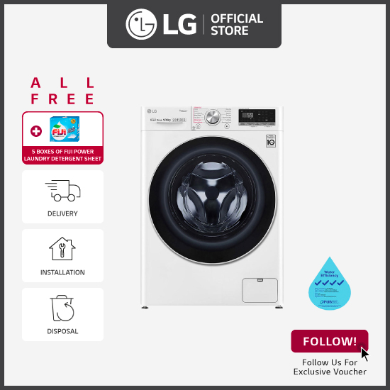 [Bulky] LG FV1409S3W 9KG AI Direct Drive Front Load Washing Machine + Free 5 Boxes of Fiji Power Laundry Detergent sheets + Free Delivery + Free Installation + Free Disposal