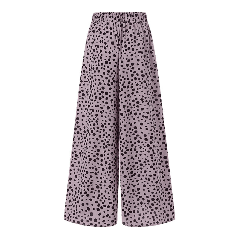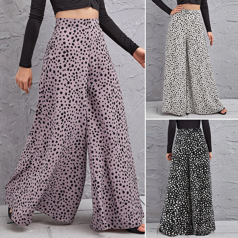 ZANZEA Women Fashion Elastic Waist Wide Leg Holiday Trousers Polka Dots Long Pants