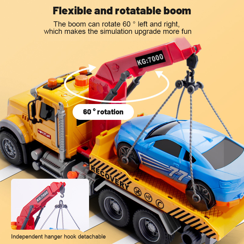 Boy Trailer Toy Crane Children's Car Large Crane Flat Road Wreckage Engineering Transport Rescue Vehicle