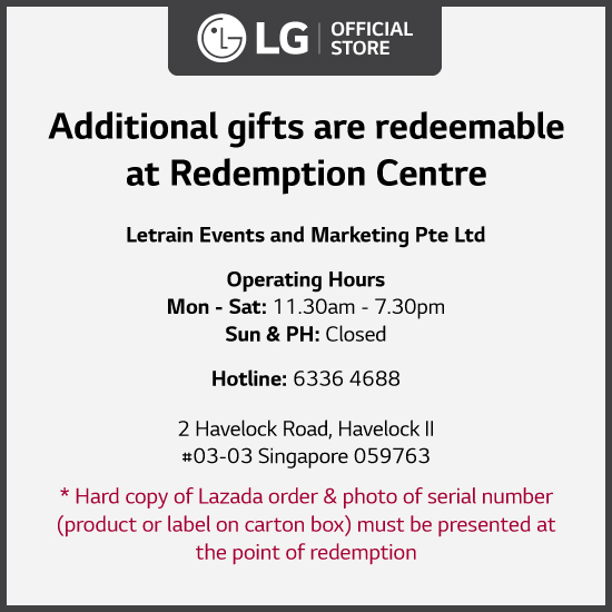• *Kindly note that LG reserves the right to reject any redemption of purchased product if the redemption has exceed the dateline for redeem.