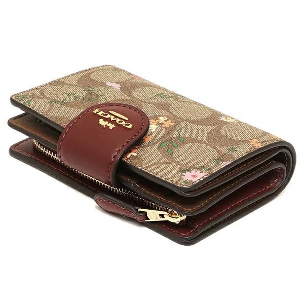 Coach Wallet In Gift Box Medium Wallet Medium Corner Zip Wallet In Signature Canvas With Wildflower Print Khaki # C8730