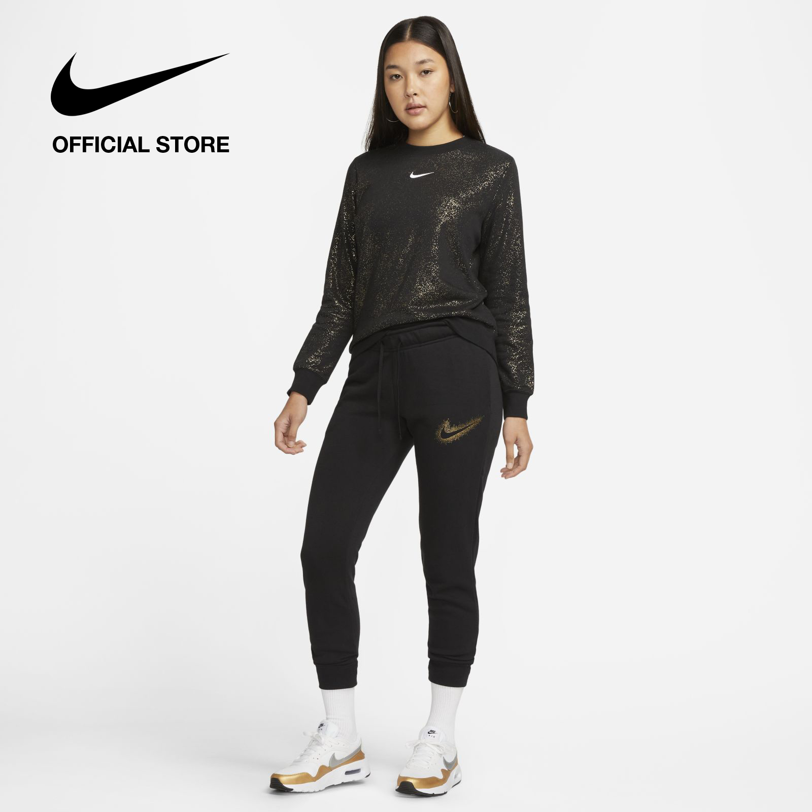 Nike Women's Sportswear AOP Crew Long Sleeve Top - Black