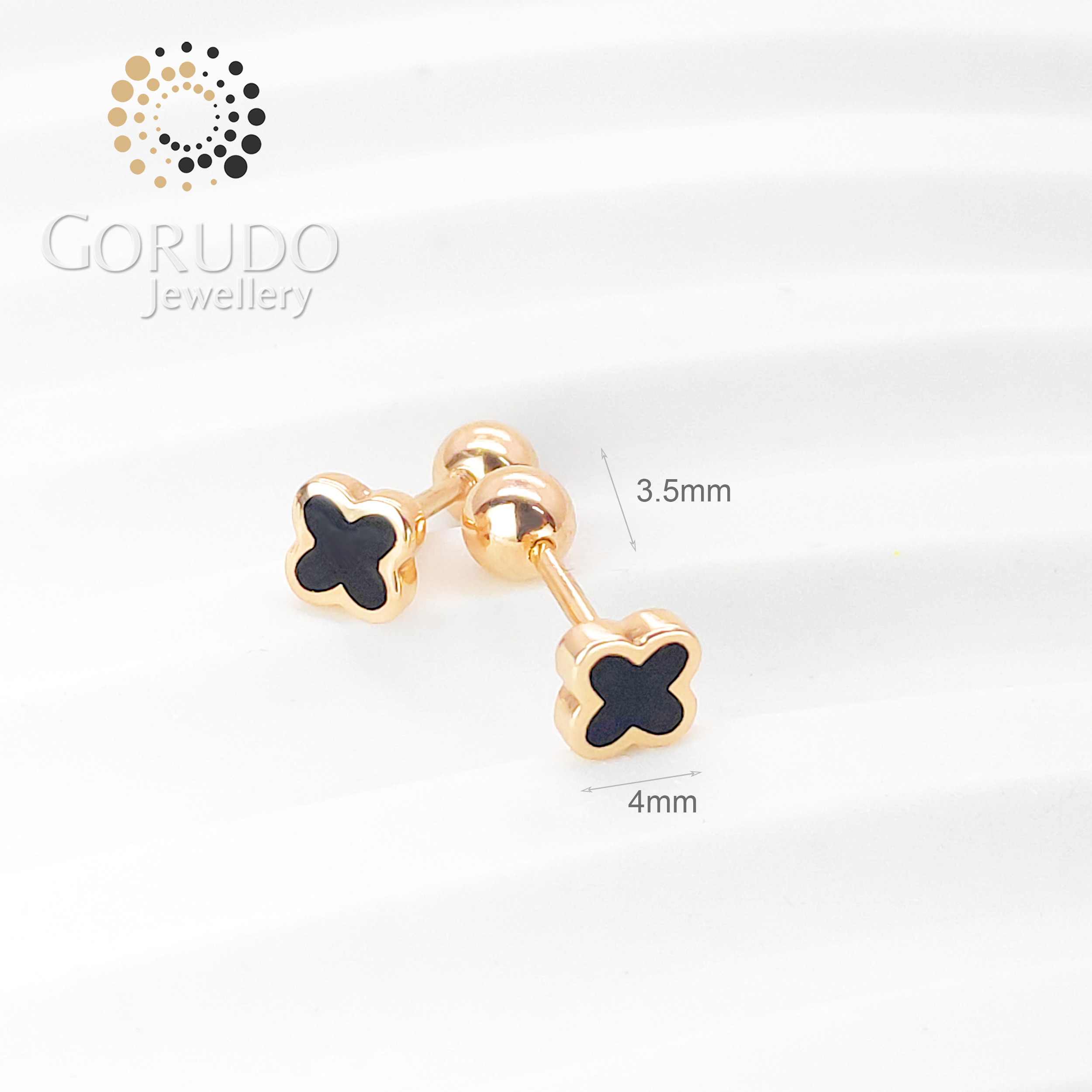 - 1 x Gorudo Jewellery 750/18K Rose Gold Mini Four Leaf Design Screw Ear Stud - FLS