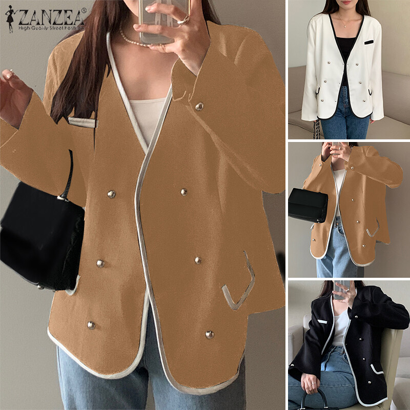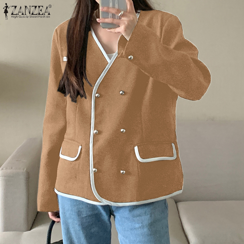 ZANZEA Korean Style Women's Elegant V-Neck Long Sleeve Blazer Office OL Double Breasted Suits #10
